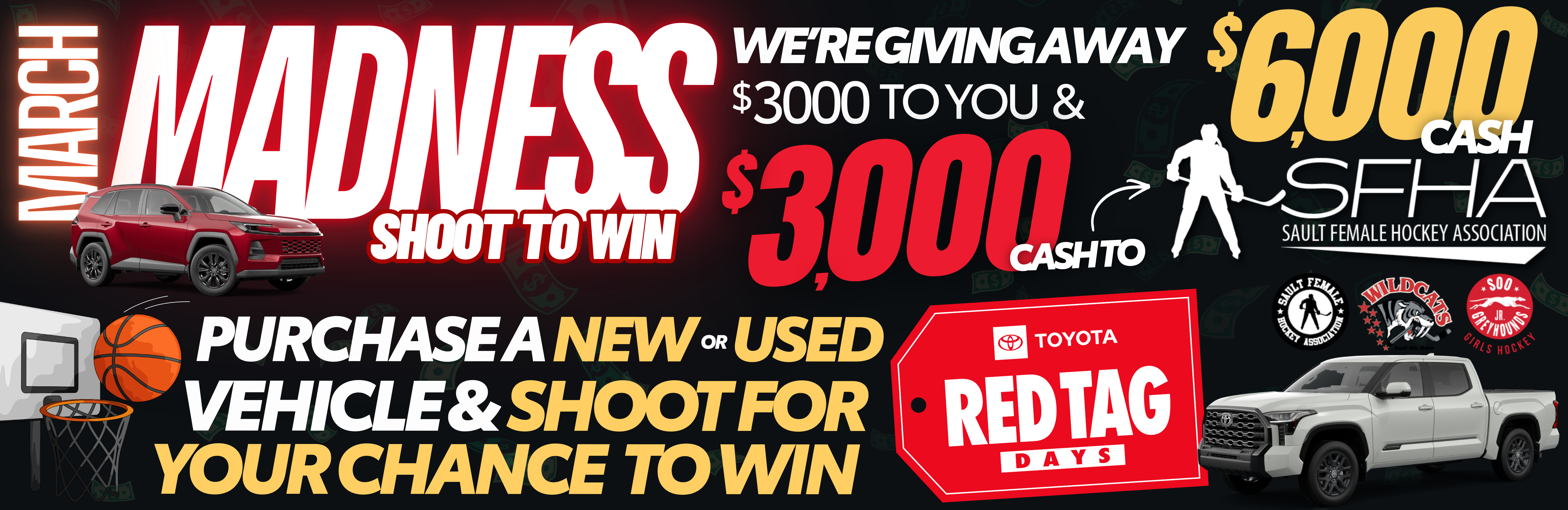 For every Shoot to Win event, Northside Toyota is proud to donate $3,000 to the Sault Female Hockey Association, helping support local athletes and grow the game right here in our community.